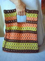 Essa bolsa, toda confeccionada com lacres de cerveja em trabalhos de crochê. É da artesã Gláucia Goes.