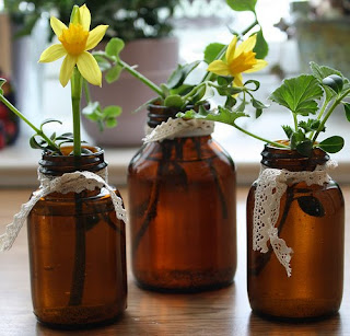 Vidros aparentemente sem serventia, viram vasos tão graciosos como esses.